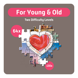 Two halves with different levels of difficulty. Large, easy-to-grip puzzle pieces for seniors.
