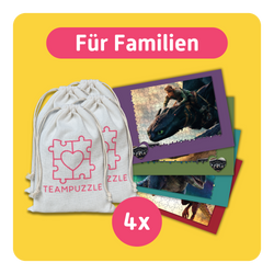 Jedes unserer Puzzle ist anders aufgebaut: mal mit großen sowie kleinen Teilen, mal in zwei Hälften oder vier Viertel und mit 194 bis 1000 Puzzleteilen. Was alle verbindet, ist der gemeinsame Puzzlespaß und ein Herzstück, das am Ende zusammen eingesetzt wird. Das Herzstück steckt in jedem TEAMPUZZLE – es ist das Puzzleteil, das am Ende alles vereint und steht für das, was TEAMPUZZLE besonders macht: gemeinsame Zeit mit Familie und Freunden.