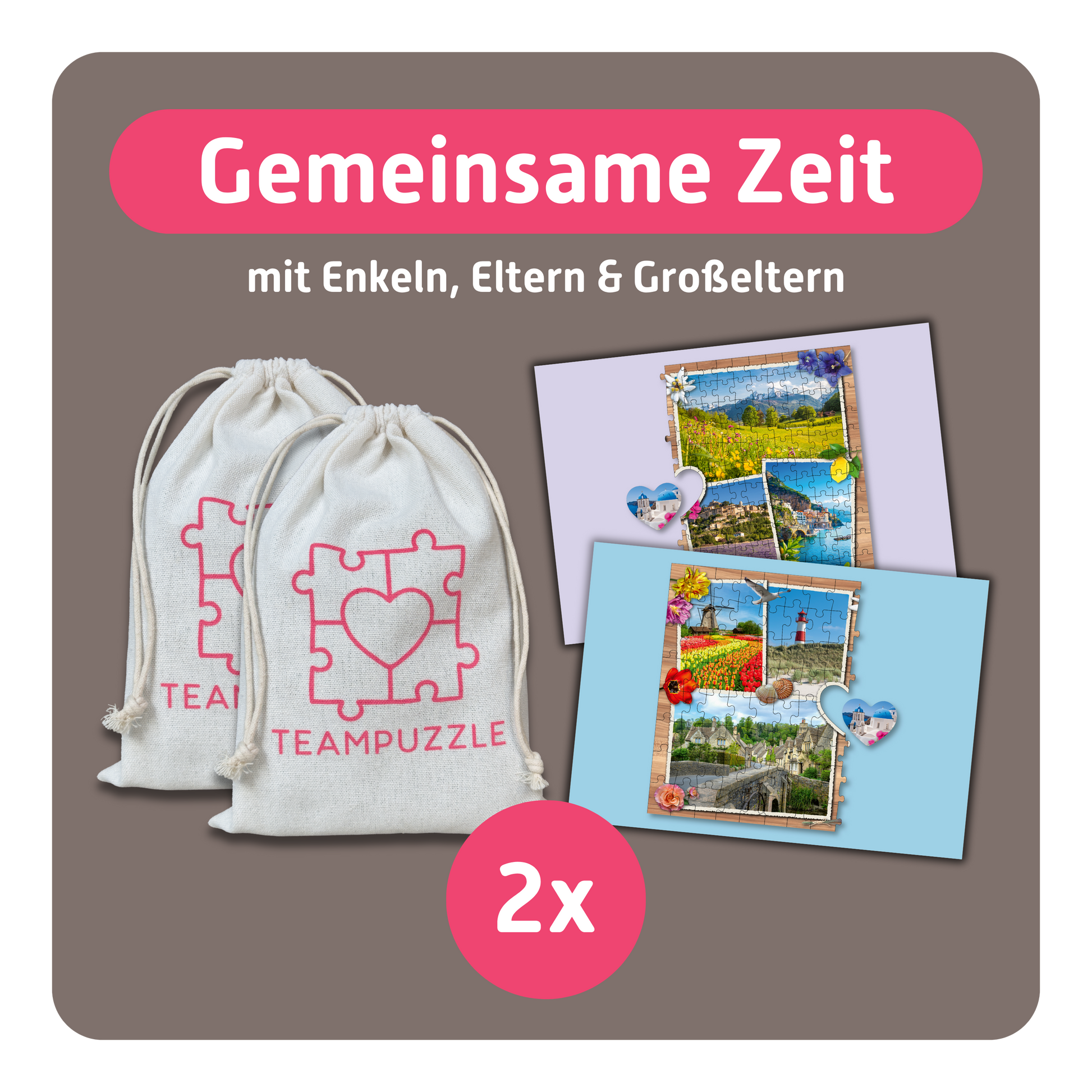 Die Idee zu TEAMPUZZLE ist in einem Hamburger Verlag entstanden und folgt einem ganz einfach Wunsch: Wieder mehr gemeinsame Zeit mit Familie und Freunden schaffen. Ganz ohne Bildschirm, live und in Farbe mit Gesprächen, Erinnerungen und Spaß am Puzzeln.